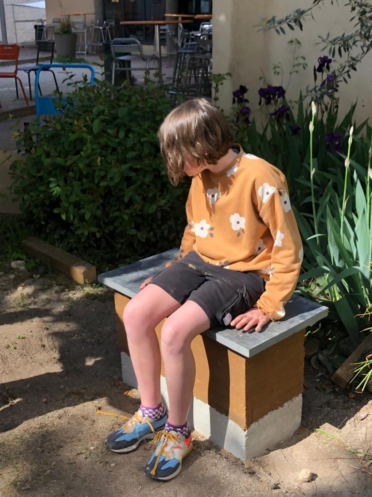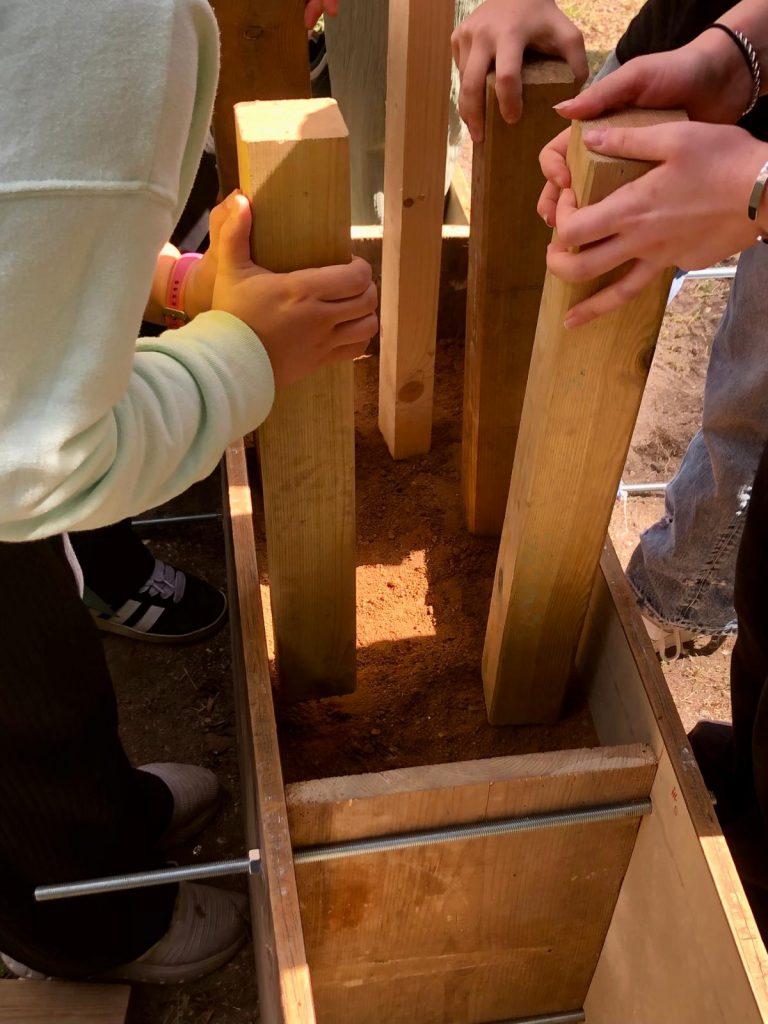 Réalisation avec les élèves de bancs en terre comprimée selon la technique du pisé